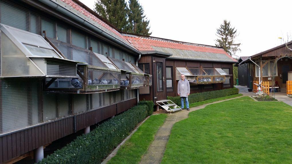 Die Schlaganlage wurde 1997 noch vor dem Neubau des Wohnhauses von der Schlagbaufirma Ottens auf besonderen Wunsch mit einem Erker gebaut, der viel Platz und Licht bietet. In den Jahren danach optimierte Sportfreund Werner den drei Meter tiefen Schlag mehrfach selbst. Einerseits wurden die kompletten 48 Kotbandzellen auf dem Gitterboden um einen kompletten Meter nach vorne gezogen. Dem fiel der Gang vor den Einflügen zum Opfer. Dafür wurde der Meter Platz im hinteren Bereich der 4 Witwerschläge gewonnen: ein idealer Stauraum. Wichtiger aber war, dass der Luftaustausch vor den Zellen dadurch besser wurde. Ein zweiter Eingriff war seiner Beobachtungsgabe geschuldet. Als Vorbild diente die Entlüftung von neu gebauten Kuhställen, die oben „offen“ sind. Willi Werner entfernte kurzerhand den kompletten Dachfirst und baute selbst nur einen Wetterschutz über den fehlenden First.